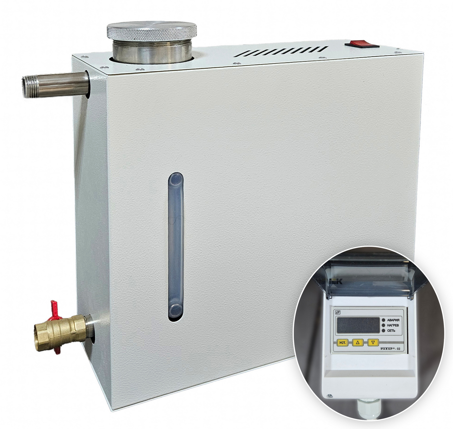 Устройство предназначено для создания и подачи пара в кедровую бочку, а также поддержания в ней заданной температуры.