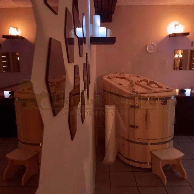 Заказывали себе домой две ванны с подиумом: одна ванна с пластиковой вставкой для более частого использования, вторая ванна-просто из кедра, так захотел муж, чтобы разные ванны были. После бани окунуться в прохладную водичку в ванной - это чудо! И с ними, кстати, намного уютнее стало.