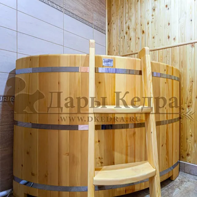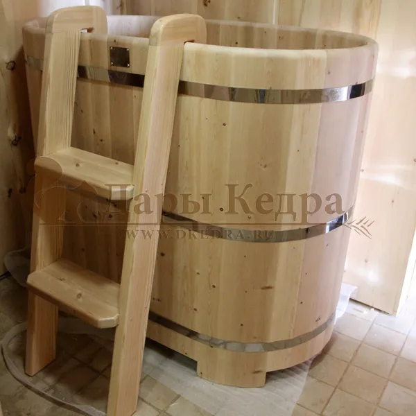 Купель идеально вписалась в помещение. Мини-бассейн из кедра - полезно, весело и практично! Рекомендую!