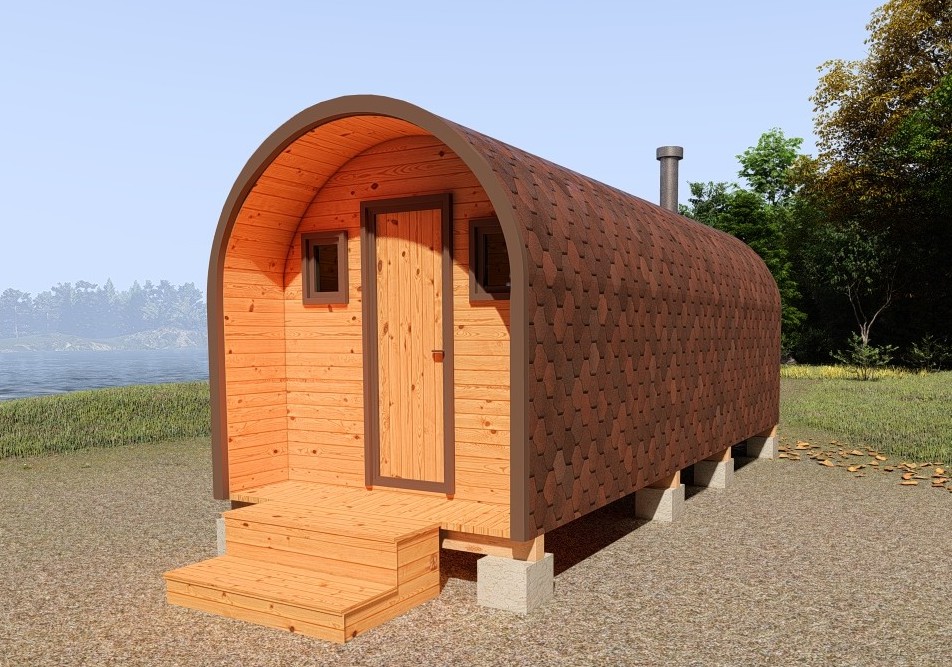 Одним из самых популярных вариантов предлагаемых конструкций модульных бань являются бани-бочки буханки. Свое название они получили благодаря тому, что их форма визуально напоминает буханку формованного хлеба, а именно, прямоугольный корпус с полукруглой кровлей. Эта концепция обеспечивает эффективное использование занимаемого пространства, обеспечивает стильный дизайн объекта.