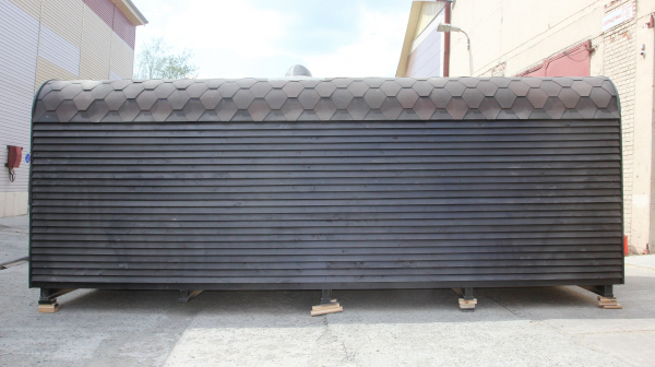 Обшивка бани снаружи рейкой в цвете венге или эбеновое дерево. Защищает каркас бани от воздействия внешней среды, придает стильный вид.