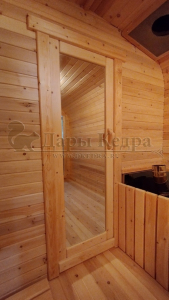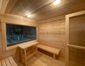 Создаст приятную атмосферу с приглушённым светом, а также визуально расширит пространство парной.