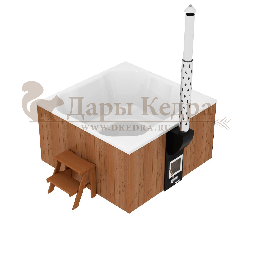 Финская квадратная композитная купель с подогревом (с интегрированной печкой) «кварта интегра 200» Это уличная подогреваемая купель с квадратной внутренней чашей, которая изготовлена из современного прочного и термоустойчивого материала (композита). Форма чаши обеспечивает комфортную посадку во время принятия процедур. Для удобства пользования купель фурако оборудована приставной лестницей. Нагрев воды происходит за счет интегрированной печи, которая встроена под чашу. Композитная вставка придает купели красивый внешний вид, продлевает срок службы и облегчает уход за изделием. Парение на свежем воздухе – это отличный способ укрепить здоровье и поддержать организм в тонусе.