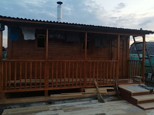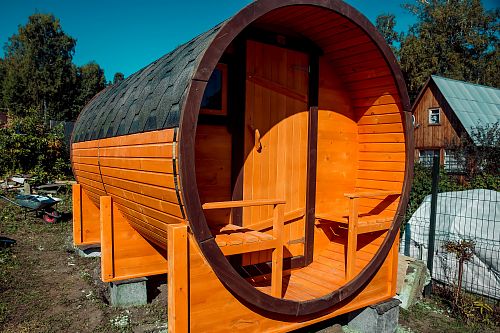 Баня-бочка получилась красивой и комфортной. На маленькой веранде можно оставить вещи и пить чай после баньки! Быстро нагревается, удобная и уютная. Для меня и моей пожилой мамы - это очень хороший вариант!