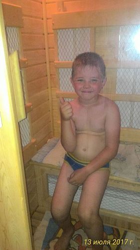 Вот так красиво вошла в мой интерьер инфракрасная сауна, изготовленная по моим размерам. На фото: Я, мой младший внук Максим, Дима-старший внук. Огромное спасибо за мою "баньку", мы очень ее любим, погреться здорово! И Вам желаем здоровья!