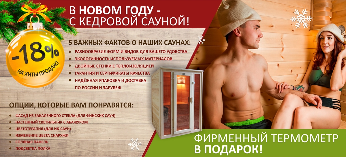 Скидку 18% можно забронировать на выбранную Вами сауну, внеся всего 10% от стоимости изделия! Мы изготовим и доставим долгожданную сауну в то время, когда будет удобно Вам!