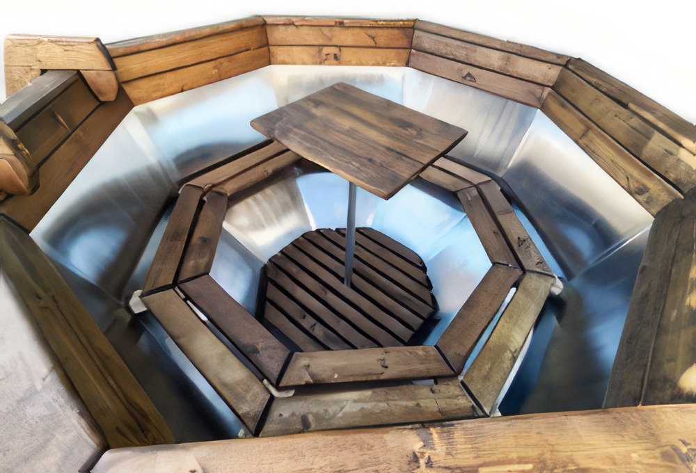 Банный чан из нержавеющей стали Ø-1750 на подставке с ветрозащитой и печью СТ3