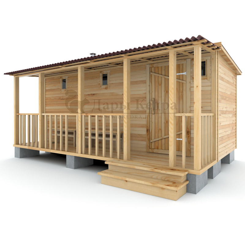 Каркасно-щитовая баня из кедра «Макси» с верандой
