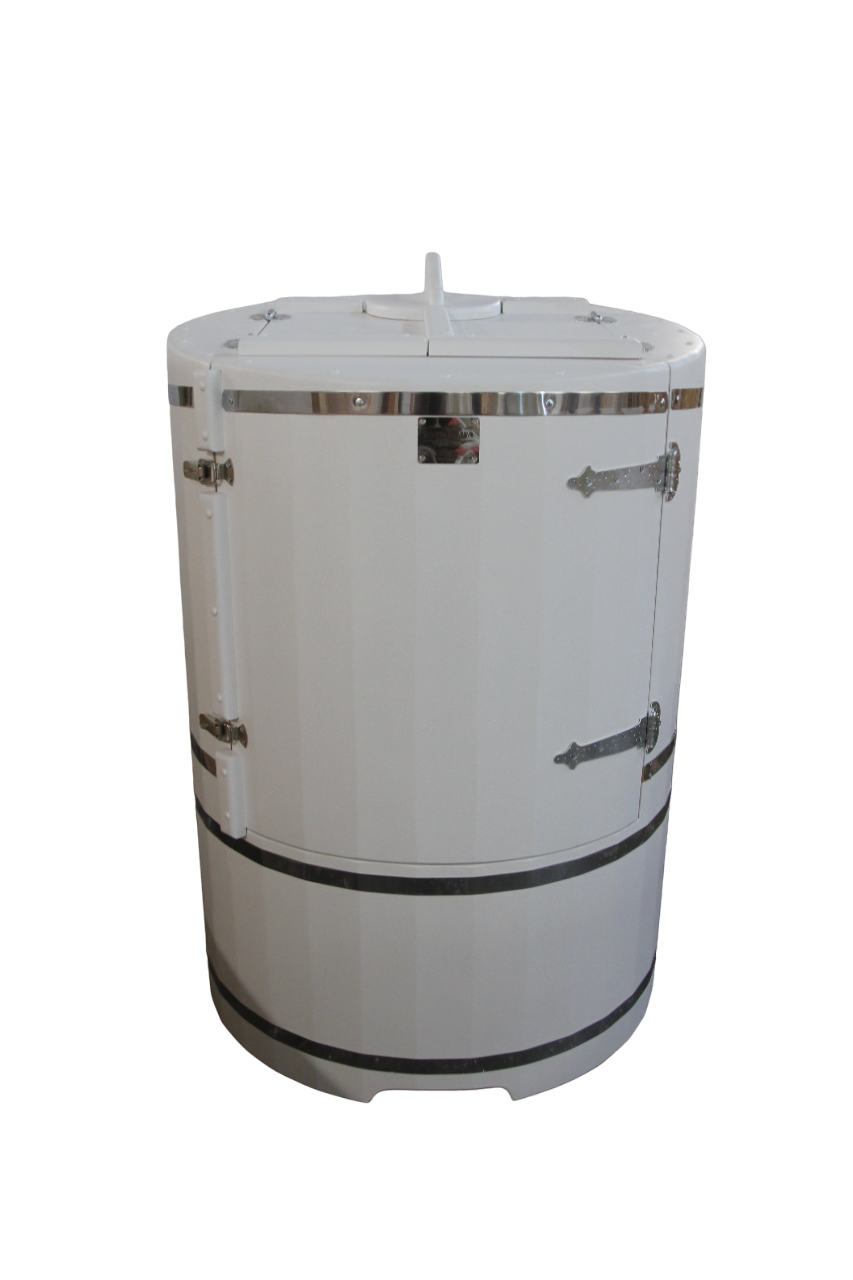 Фитобочка горизонтальная из кедра наиболее комфортна в использовании, потому что во время процедур человек принимает лежачее положение. Она оснащена откидной дверцей, которая во время открывания хорошо держится за счет джутовых веревок. Внутренняя ручка из кедра облегчает открывание и закрывании двери во время использования. Такая модель подходит для оздоровительных центров.