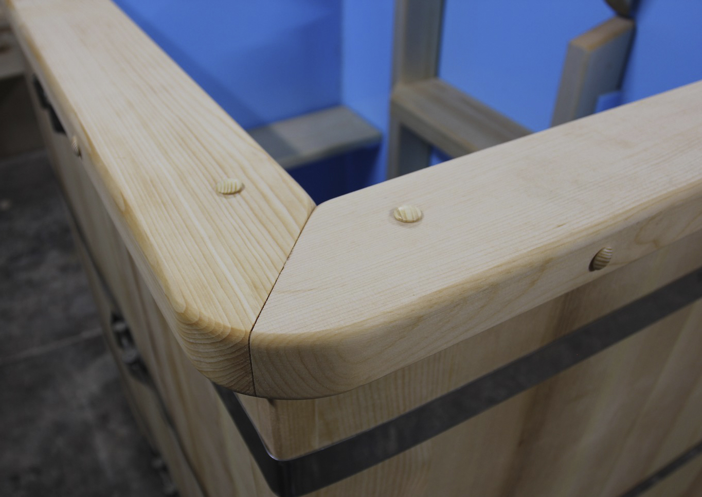 Борт по краю купели из кедра может служить полкой под различные предметы, а также придаст законченный вид и сделает купель визуально более эстетичной. Ширина борта - 8 см.