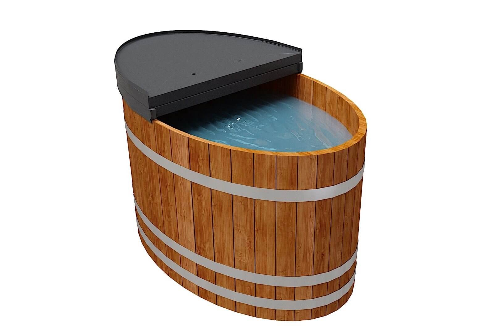 Это купель с внутренней овальной чашей, которая изготовлена из современного прочного и термоустойчивого материала (композита). Форма чаши обеспечивает комфортную посадку внутри изделия. Для удобного использования купель оснащена приставной лестницей. Обручи из нержавеющей стали декорируют купель с композитом и равномерно распределяют нагрузку во время процедур.