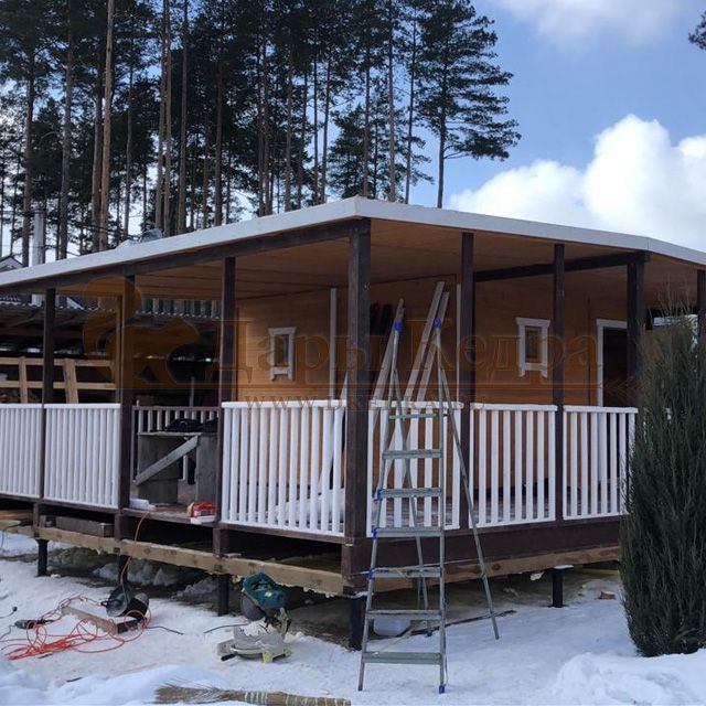 Каркасно-щитовая баня из кедра «Макси» с верандой